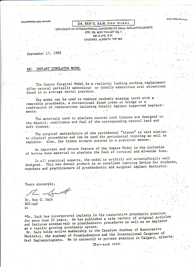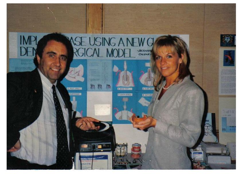 As they say: “necessity is the mother of invention”, his ingenuity and tenacious research led to 4 “Gumtex” dental surgical training models incorporating recycled cow bone (AB T- Bone, Rib Eye, NY Strip, Porterhouse) and select biopolymers that simulate the jaw bone, periodontal tissues and teeth to perform procedures encountered during medical/dental school curriculae. They sold like hotcakes via peer reviewed hands-on table clinic presentations like book signings or 2 day lectures and ultimately went to more than 40 countries to train over 4000 dentists, students, profs… It paid for his lengthy medical, dental education including graduate studies and clinic via American and Canadian dental surgical instrument manufacturers and CE awards, etc. Such a simple $10 idea! It led to his nickname “Dr Gum”….
